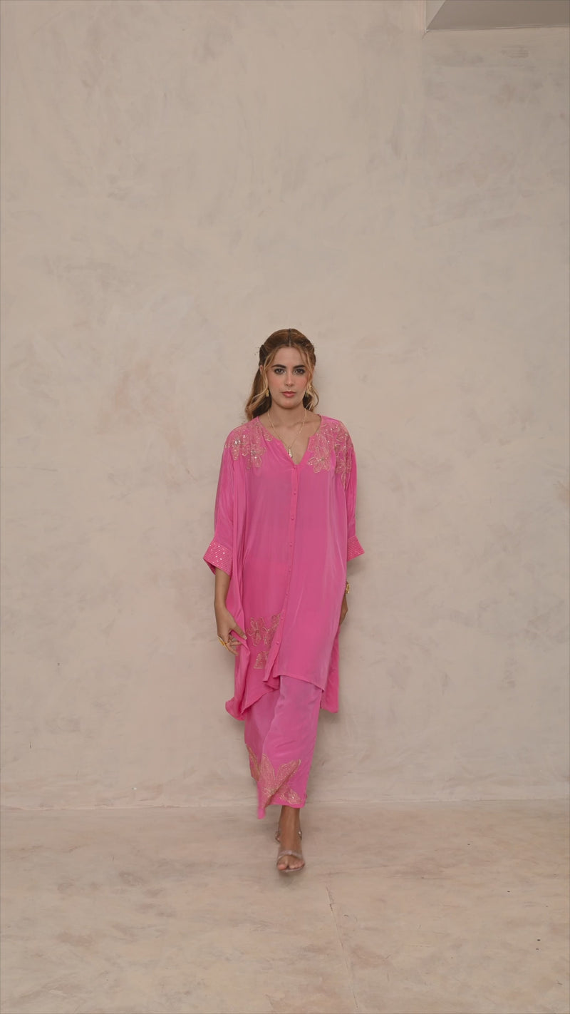 Drape yourself in effortless elegance with this vibrant Fuchsia Pink Kaftan Kurta. Crafted from soft, breathable fabric, it features a flattering V-neckline and a free-flowing silhouette that combines comfort with sophistication. Perfect for casual outings, festive gatherings, or resort-inspired styling, this kaftan kurta set adds a pop of color and charm to your wardrobe.